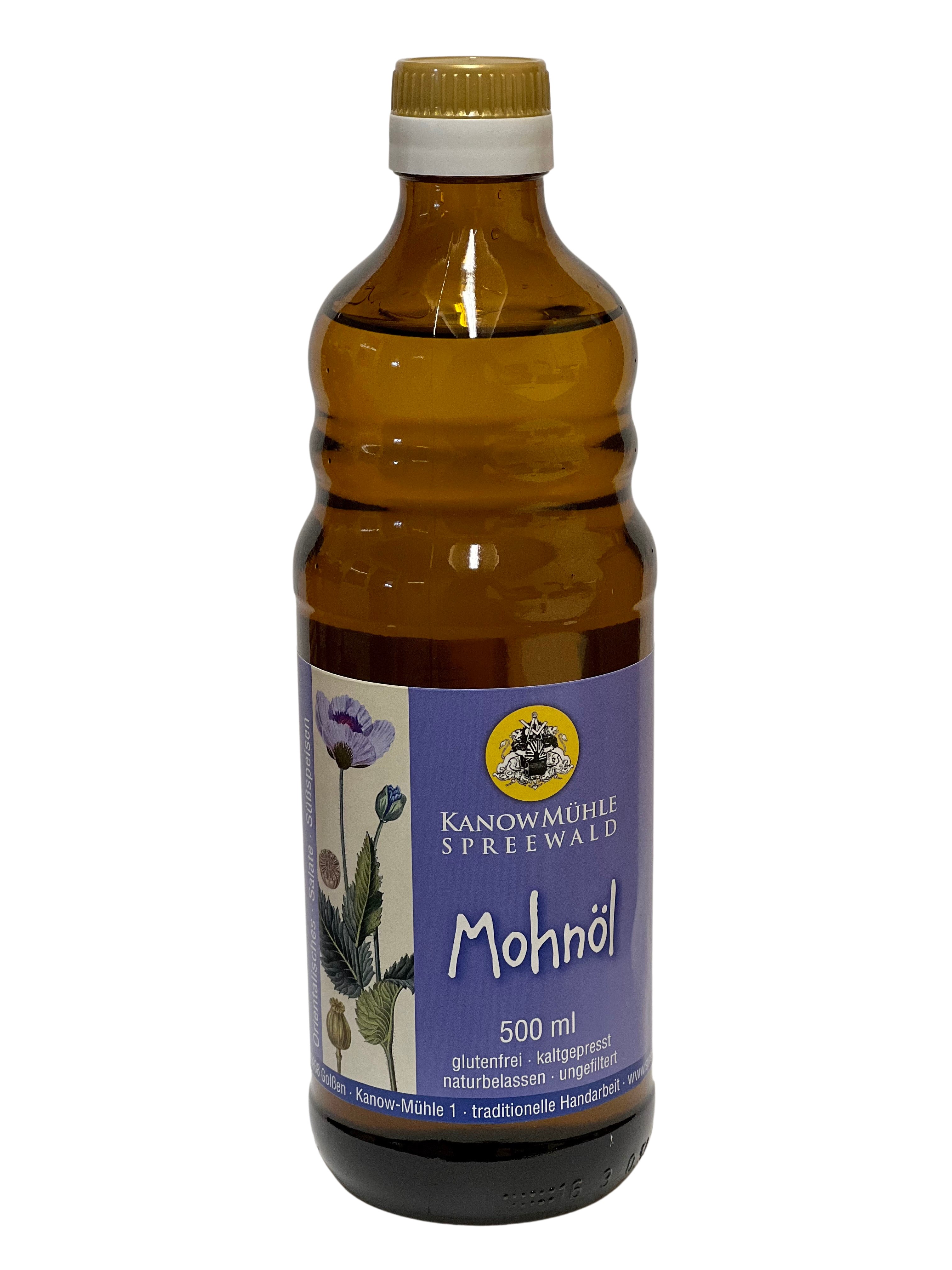Ein traditionell hergestelltes Öl aus kaltgepressten Samen des Blaumohns. Vielseitig einsetzbar, verfeinert Rohkost, Salate, Gemüsegerichte, Kuchen und mehr. Ursprünglich aus dem östlichen Mittelmeerraum, verwendet in der griechischen Antike als Schlafmittel. Besondere Anwendung in Suppen und orientalischer Küche. Nicht zum Braten oder Backen geeignet, ideal für Dünsten. Wird auch in der Malerei, Holz- und Lederpflege sowie im Kosmetikbereich geschätzt.