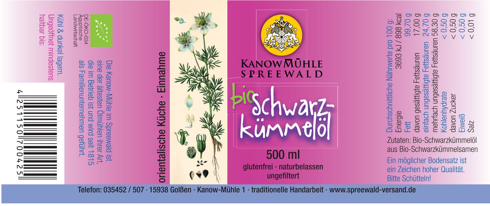Haltbarkeit: Ungeöffnet ist Schwarzkümmelöl 9 Monate haltbar.